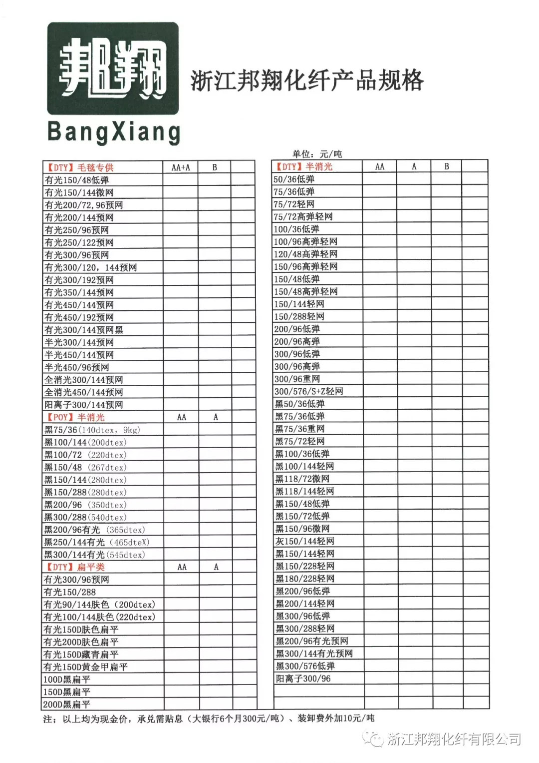 جدول مشخصات محصول گروه هلدینگ ژجیانگ Bangxiang-فهرست محصولات