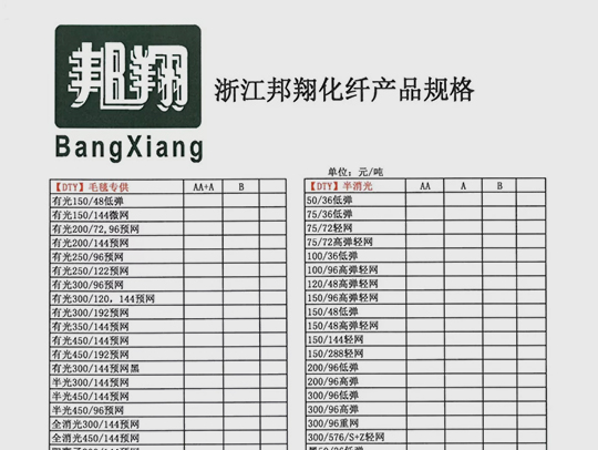 جدول مشخصات محصول گروه هلدینگ ژجیانگ Bangxiang - لیست محصولات